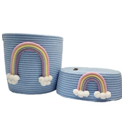ست سطل و جادستمال کاغذی اتاق کودک قیطان دوزی شده مدل رنگین کمان کد 2 مجموعه 2 عددی