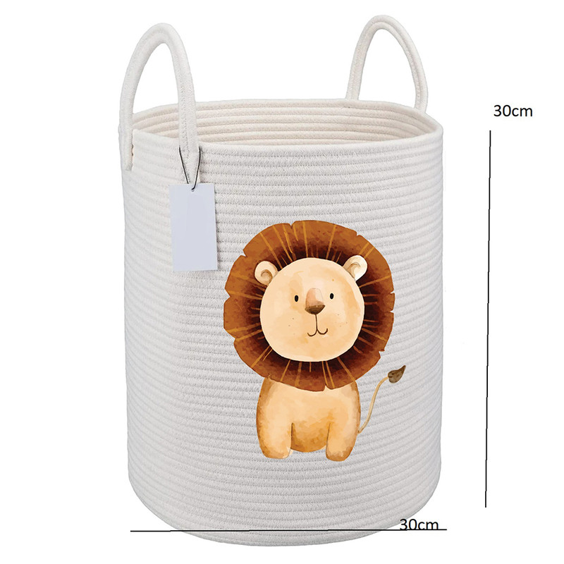 ست سبد اتاق کودک مدل حیوانات جنگل کالایی ساخته شده از ریسمان قیطان است که دوختی تمیز و محکم دارد. این کالا شامل یک سبد اسباب بازی به قطر 30سانتیمتر و ارتفاع ۴۰ سانتیمتر و یک سطل و جای دستمال و یک سبد گرد نظم دهنده است. این محصول قابل شستشو در ماشین لباسشویی و یا بصورت دستی میباشد.