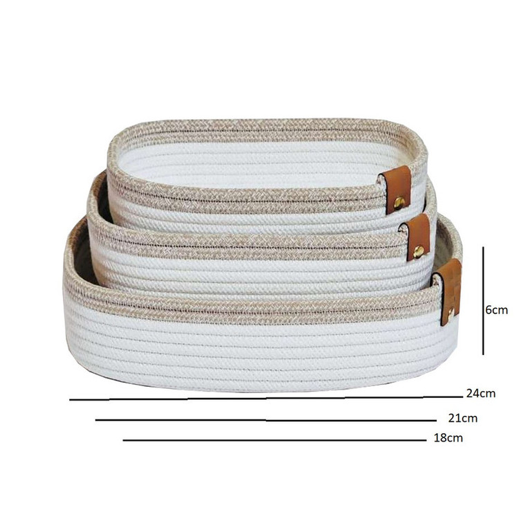 ست سه عددی سبد مدل M94 دوخته شده از جنس قیطان کتان است . ای ست سبد در 3 سایز با طولهای 24 و 21 و 18 سانت و به ترتیب عرض 15 و 12 و 9 سانت و با ارتفاع حدودی 6 سانت میباشد.