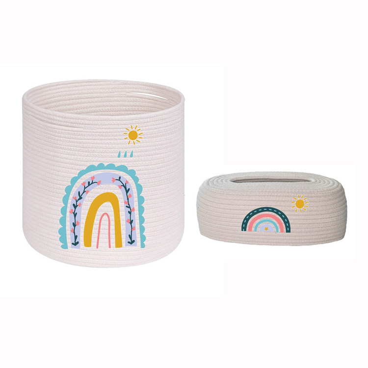 ست سطل و جادستمال کاغذی قیطان دوزی شده اتاق کودک مدل رنگین کمان کد 1 مجموعه 2 عددی