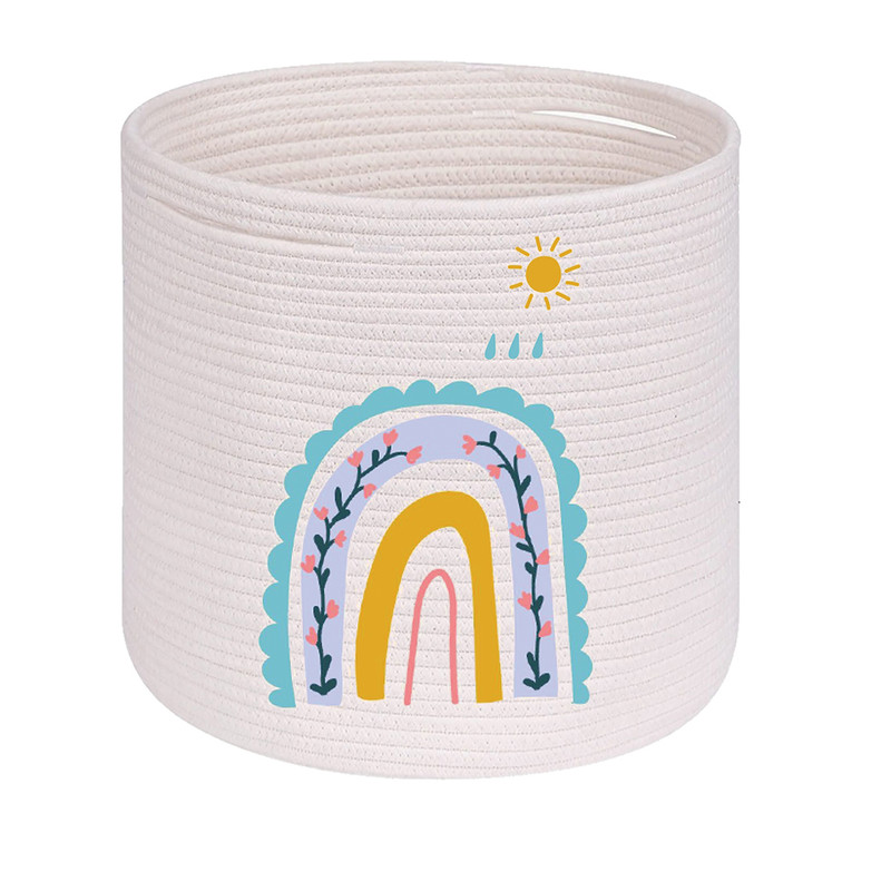 ست سطل و جادستمال کاغذی قیطان دوزی شده اتاق کودک مدل رنگین کمان کد 1 مجموعه 2 عددی