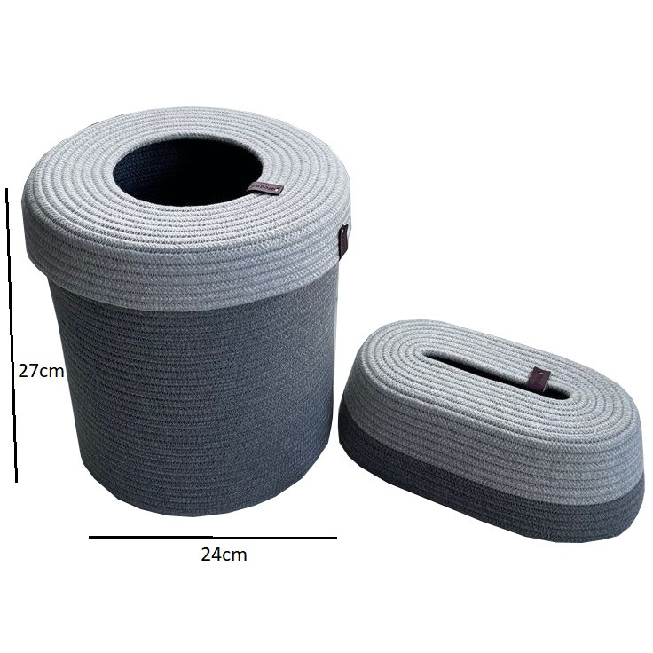 ست سطل و جای دستمال کاغذی قیطان دوزی شده مدل 01