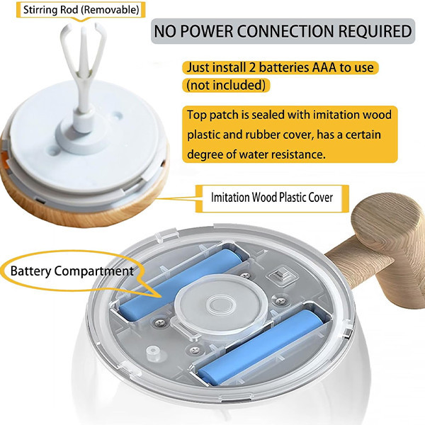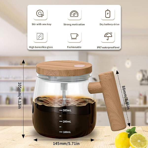 این ماگ همزن برای هم زدن قهوه فوری با خامه میت قهوه، چای، شکلات داغ، شیر، شیک های پروتئینی، لیمو، شربت، شکر یا سایر نوشیدنی های سبک مناسب است. این لیوان قهوه خود همزن با دو عدد باتری AAA تغذیه می شود. 2 عدد باتری شارژی نیم قلمی سولونیکس مدل صنعتی Ni-Cd 350mAh ارسال میشود تا دیگر دغدغه خرید باتری را نداشته باشد و به راحتی باتری ها را شارژ نمایید (باتری شارژی از برند سولونیکس جز قوی ترین باتری های موجود در بازار است )، لطفا قبل از استفاده باتری را داخل در آن قرار دهید. در ماگ پیرکس ضد آب است و نیازی به نگرانی در مورد ورود آب به داخل در نیست. برای همزدن محتویات لیوان فقط کافیست که دکمه روی در آن را فشار دهید. فنجان خود مخلوط کن ما از شیشه بوروسیلیکات با درجه مواد غذایی ساخته شده است. فنجان قهوه همزن برقی با ظرفیت 400 میلی لیتر می تواند هر دو نوشیدنی گرم و سرد را تحمل کند. دارای روتور جدا شونده که در زمان شستشو می توان روتور همزن را از در لیوان باز کرد. زمانی هم که از این ماگ استفاده نمی کنید، می توانید روتور همزن را درون دسته ماگ قرار دهید.